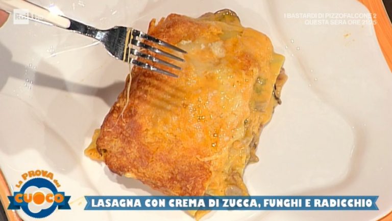 Decano dei cuochi in televisione, volto amatissimo di Alice tv, canale dedicato interamente alla cucina, Fabio Campoli torna protagonista a La prova del cuoco, con una lasagna a base di zucca, straordinario ortaggio di stagione. Vediamo, quindi, come preparare la lasagna con crema di zucca funghi e radicchio.