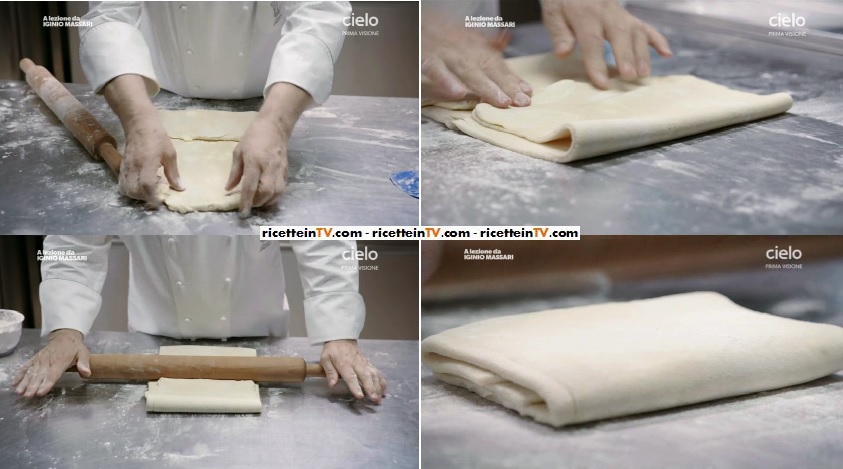 Il maestro pasticcere Iginio Massari, protagonista della rubrica posta in apertura di ciascuna puntata di Master Pasticcere di Francia 2, su Cielo, ha preparato uno dei classici della pasticceria nostrana, rivelando le dosi ed i passaggi della sua preziosa ricetta. Quindi, ecco la ricetta della pasta sfoglia.Di seguito ingredienti e procedimento.