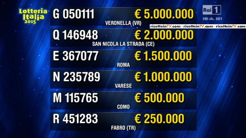 Dopo un’attesa lunga mesi, piacevolmente trascorso ai fornelli de La prova del cuoco, questa sera, la ‘Dea Bendata‘ è pronta a regalare ricchi premi ai possessori dei biglietti della Lotteria Italia.