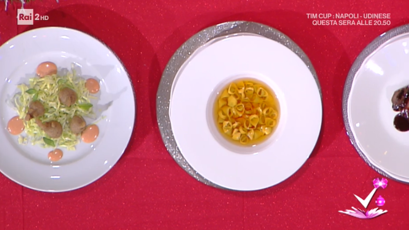 I tutor Fabio Pisani e Alessandro Negrini, protagonisti dello spazio dedicato alla cucina, all’interno del programma condotto da Caterina Balivo su Rai2, Detto Fatto, hanno preparato agnoli di cappone e sciatt ai gamberi. Di seguito ingredienti e procedimento.