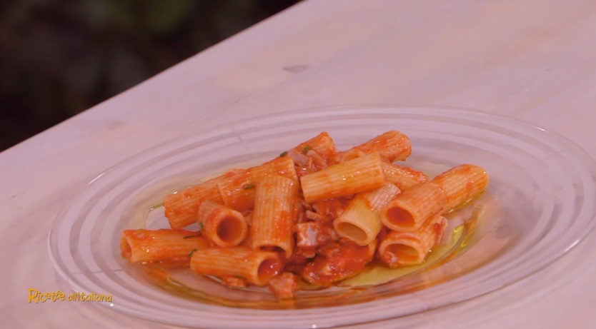 Mettiamo a cuocere i rigatoni in acqua bollente e salata per il tempo necessario.