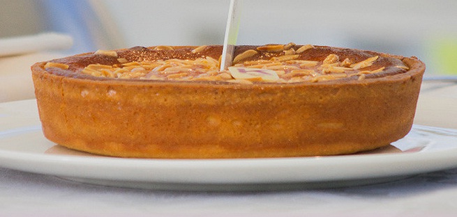 - 300 g frolla bianca, 100 g frangipane, 100 g crema pasticcera.