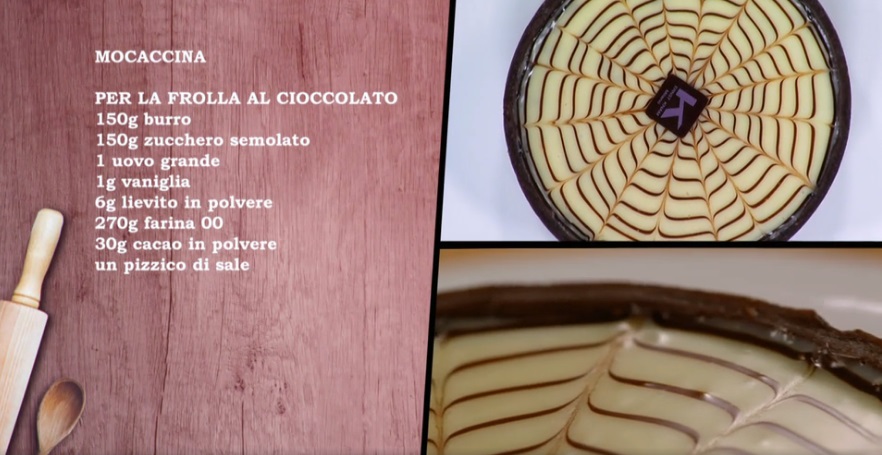 - Frolla al cioccolato: 150 g burro, 150 g zucchero semolato, 1 uovo grande, 1 g vaniglia, 6 g lievito in polvere, 270 g farina 00, 30 g cacao in polvere, un pizzico di sale