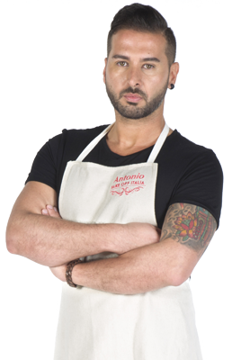 Antonio – 34 anni, Cellammare (BA), disoccupato. Appassionato da sempre di dolci, Antonio sogna di aprire una bakery in stile americano, come le torte che preferisce. Il suo pezzo forte è la devil’s food cake, ma il vero must rimane un dolce di sua invenzione, lo stesso che ha portato al casting, chiamato torta primavera: frolla con crema pasticcera, ciliegie e scaglie di mandorle. Antonio cucina spesso per la moglie e la figlia Marika, per la quale prepara di solito le brioche per la colazione. Solare, pacato e dai modi gentili, per Antonio i dolci devono esprimere eleganza e prepararli è un po’ come “regalare un pezzo di cuore a qualcuno”.