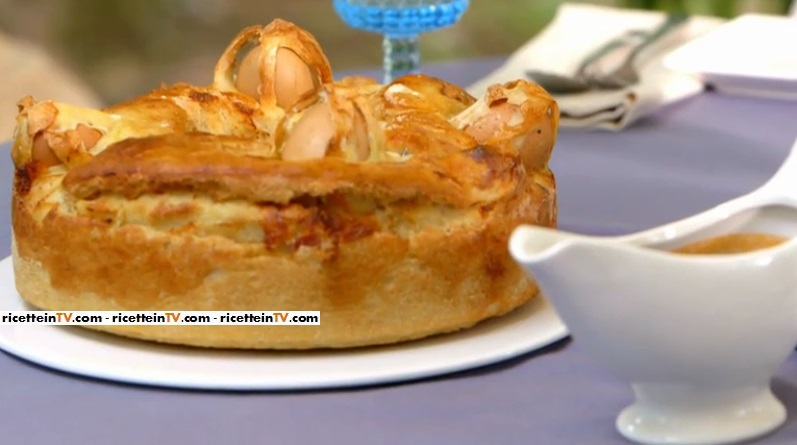 Preparare il brodo con l’acqua e le verdure (2 carote, 1 costa di sedano, 1 patata, 1 pomodoro). Portare a bollore 150 ml di brodo con il resto degli ingredienti, per circa 20-25 minuti, fino a ottenere la consistenza di uno sciroppo. Servire il casatiello con la salsa a parte.