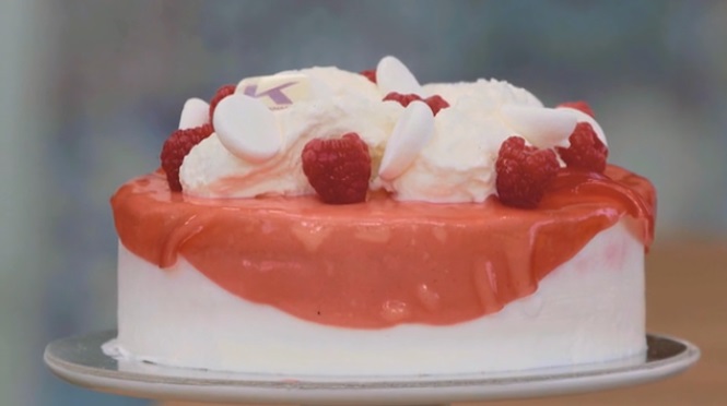 Elastic al lampone: in un pentolino scaldiamo l’acqua, la purea di lampone e l’elisir di rosa. Quando la miscela arriva a bollore, mettiamo a sciogliere la gelatina precedentemente reidratata in acqua fredda. Filtriamo e versiamo all’interno del disco da 20 cm, in modo che la gelatina formi una pellicola su tutto