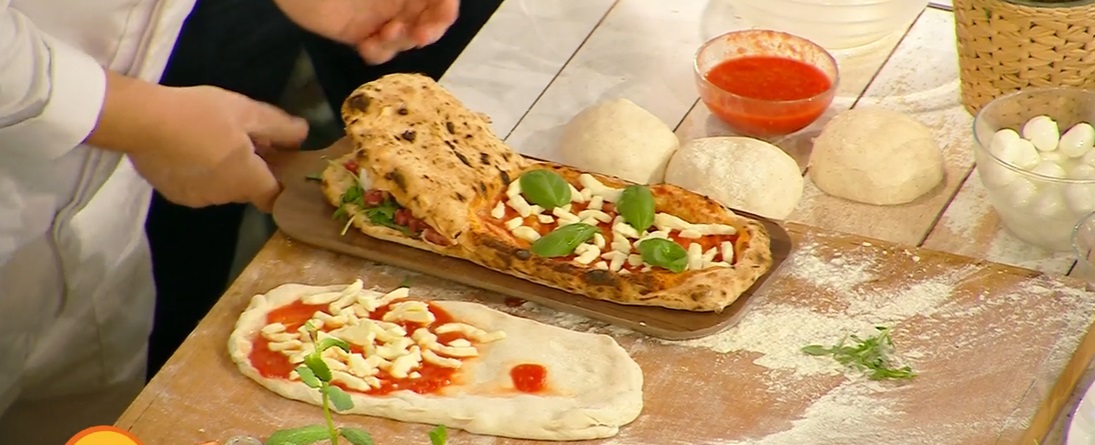 Il celebre pizzaiolo Errico Porzio, all’interno del nuovo programma del mezzogiorno di Rai1 “Camper“, in onda ogni giorno, dal lunedì al venerdì, alle 12:00, ha proposto la ricetta di un lievitato di sua invenzione, una versione inedita della pizza. Ecco la pizzimbocca .