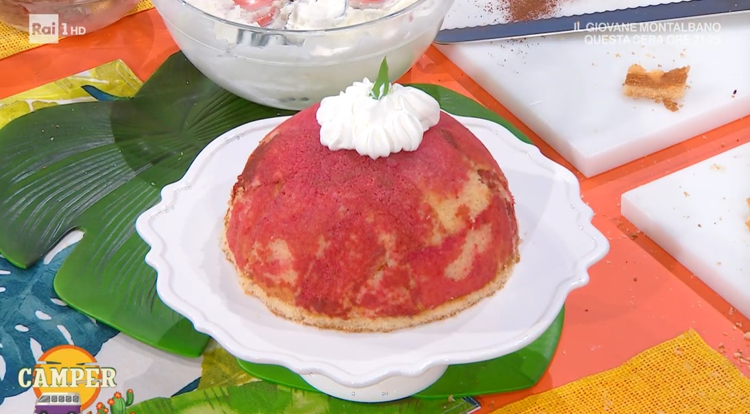 Prendiamo uno stampo a mezzasfera o una insalatiera, la foderiamo con la pellicola, quindi con delle strisce di pan di Spagna. Inzuppiamo quest’ultime con una bagna ottenuta diluendo l’alchermes con l’acqua. Versiamo sul fondo dello zuccotto la crema bianca, che spalmiamo anche sui lati, creando un incavo al centro. Riempiamo quest’ultimo con la crema al cacao (foto), quindi chiudiamo lo zuccotto con altre fette di pan di Spagna inzuppate. Chiudiamo con la pellicola, schiacciamo bene e mettiamo in freezer. Una volta ben freddo, lo sformiamo e lo decoriamo con panna montata e altro, a piacere.