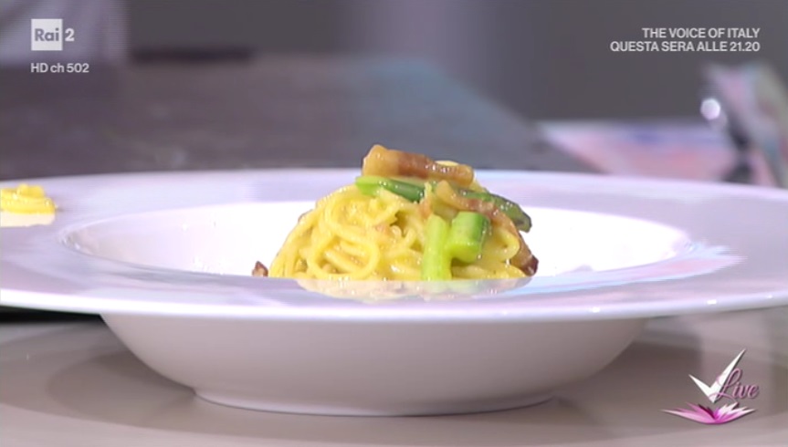 carbonata agli asparagiIl tutor Tommaso Arrigoni, protagonista dello spazio dedicato alla cucina, all’interno del programma condotto da Caterina Balivo su Rai2, Detto Fatto, ha dato la ricetta della carbonara agli asparagi. Di seguito ingredienti e procedimento.