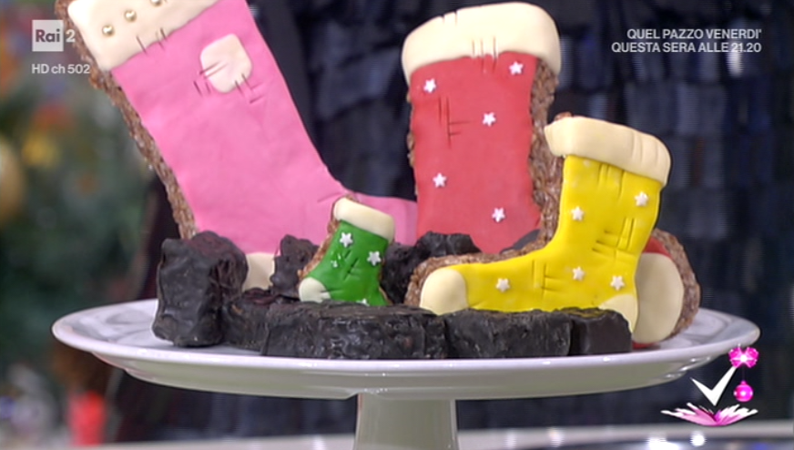 La tutor Giulia Vaiana, protagonista dello spazio dedicato alla cucina, all’interno del programma condotto da Caterina Balivo su Rai2, Detto Fatto, ha proposto il carbone e la calza della Befana. Di seguito ingredienti e procedimento.