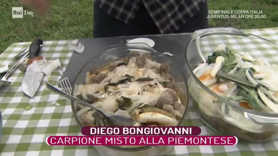 In collegamento dalle vigne del padre, Diego Bongiovanni propone uno dei suoi piatti ‘esagerati’, che gli proviene dalla cucina tradizionale piemontese; un’idea per l’estate, che ci permette di conservare e reinventare gli avanzi. Ecco il carpione misto alla piemontese.