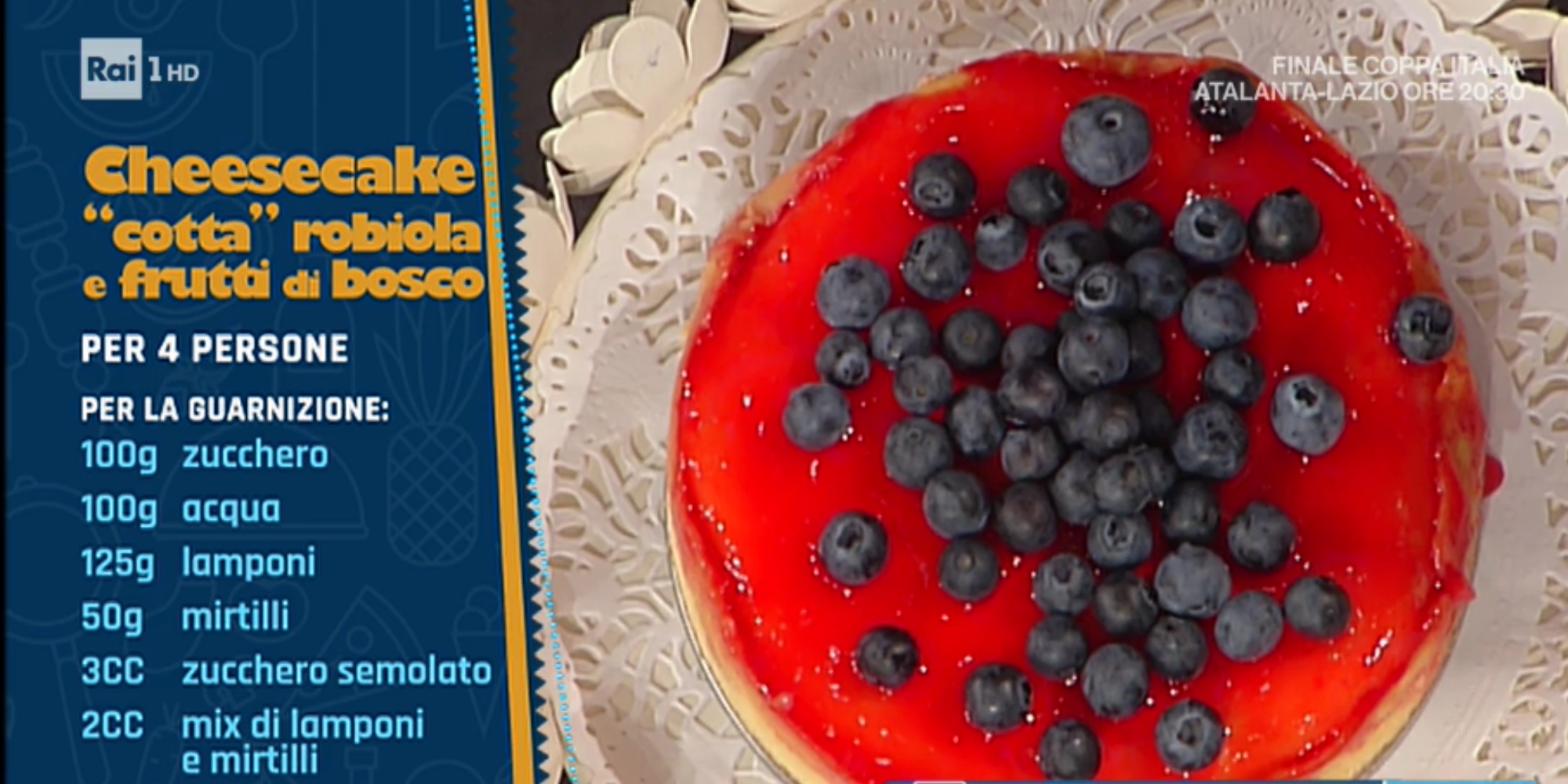 Duello delle città dolcissimo, quest’oggi, poichè a sfidarsi sono Palermo e Bologna sul tema ‘cheesecake‘. Se Natale Giunta prepara una cheesecake cannolo, Riccardo Facchini risponde con una classica  cheesecake cotta robiola e frutti di bosco.