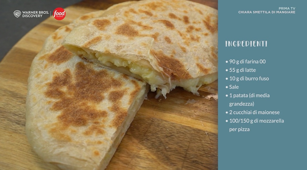 Stendiamo l’impasto ormai riposato con il mattarello, ad uno spessore di 2 mm circa, in modo da ottenere un disco sottilissimo. Al centro, disponiamo metà della mozzarella per pizza grattugiata e, sopra, la crema di patate e maionese. Finiamo con l’altra metà della mozzarella grattugiata, quindi ripieghiamo i lembi esterni del disco di pasta sul ripieno, sigillando bene le giunture. Schiacciamo ancora con il mattarello, in modo da ottenere un disco spesso circa 3 cm. Scaldiamo una padella imburrata e mettiamo a cuocere il tortino, con il coperchio: deve dorare sui due lati.