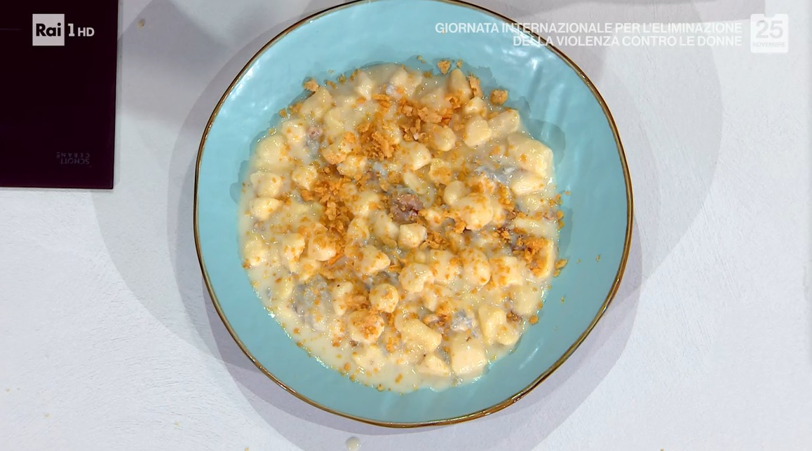 Per il condimento, in padella facciamo sciogliere il gorgonzola, a fiamma dolce. Uniamo gli gnocchi e mescoliamo qualche istante sul fuoco. Prima di servire, uniamo le noci sgusciate sbriciolate.