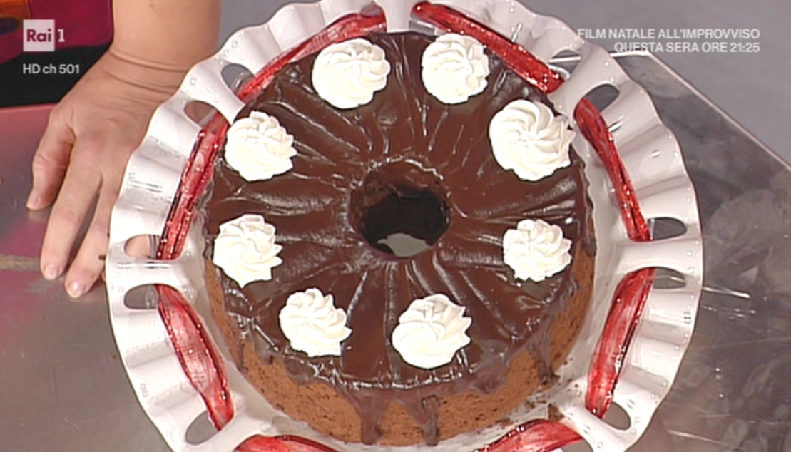 Trasferiamo il composto ottenuto nello stampo da chiffon cake da 24 cm di diametro, che non dev’essere imburrato o infarinato. Cuociamo a 165° per 50-60 minuti. Vale la prova stecchino. Appena sfornata, capovolgiamo sui piedini dello stampo e lasciamo raffreddare 1 ora. Stacchiamo le pareti della torta con un coltellino e la sformiamo.