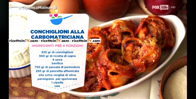 Il celebre chef de La prova del cuoco, Andrea Mainardi, trasloca su Fox Life con Ci pensa Mainardi (tutte le domeniche alle 19:30). All’interno di ciascun episodio, l’istrionico cuoco soccorre le vittime degli ‘incapaci ai fornelli‘, imbastendo menu golosi ed ad hoc. Oggi, un primo piatto sfizioso, i conchiglioni alla carboamatriciana.