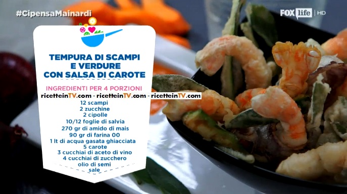 “Ci pensa Mainardi”: la ricetta della tempura di scampi e verdure con salsa di carote.
