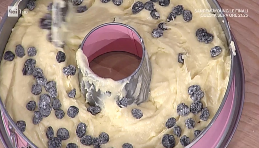 - Ciambellone: 400 g farina, 200 g zucchero, 4 uova, 120 g burro morbido, 120 g latte, buccia di limone, 80 g mirtilli disidratati, 1 bustina di lievito, 1 pizzico di sale