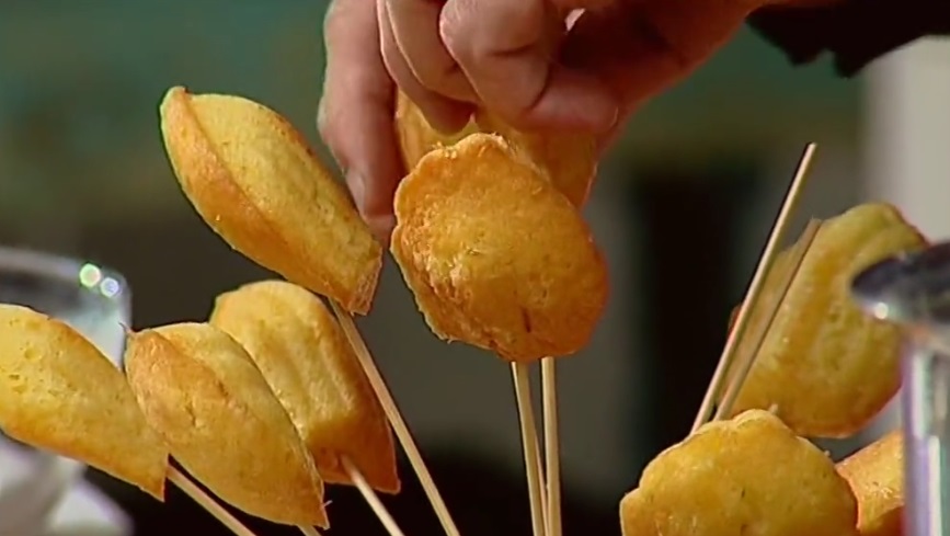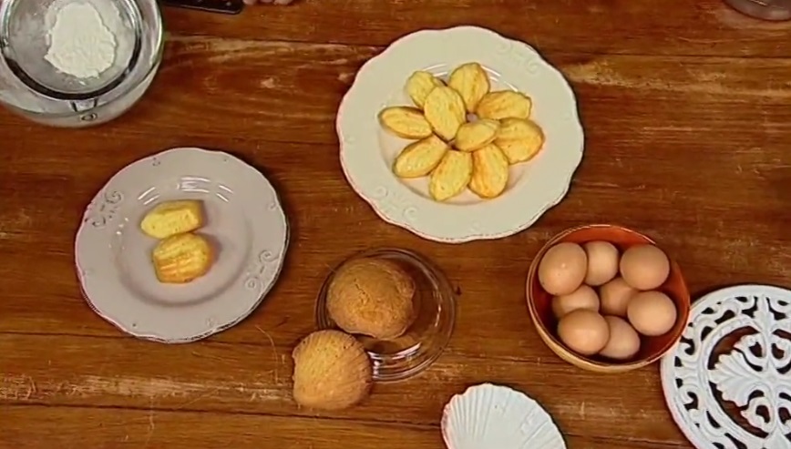 A parte, misceliamo la farina ed il lievito. Li setacciamo e li uniamo al primo composto, avendo cura di amalgamare il tutto con una spatola. Trasferiamo in un sac a poche e riempiamo gli appositi stampini. Inforniamo a 120° – 140° per 10 minuti circa.