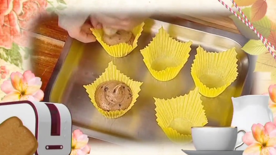 Riempiamo gli appositi stampini da muffin con il composto ottenuto per 2/3 della loro altezza. Inforniamo a 160° per 20 minuti. Serviamo con creme a piacere.