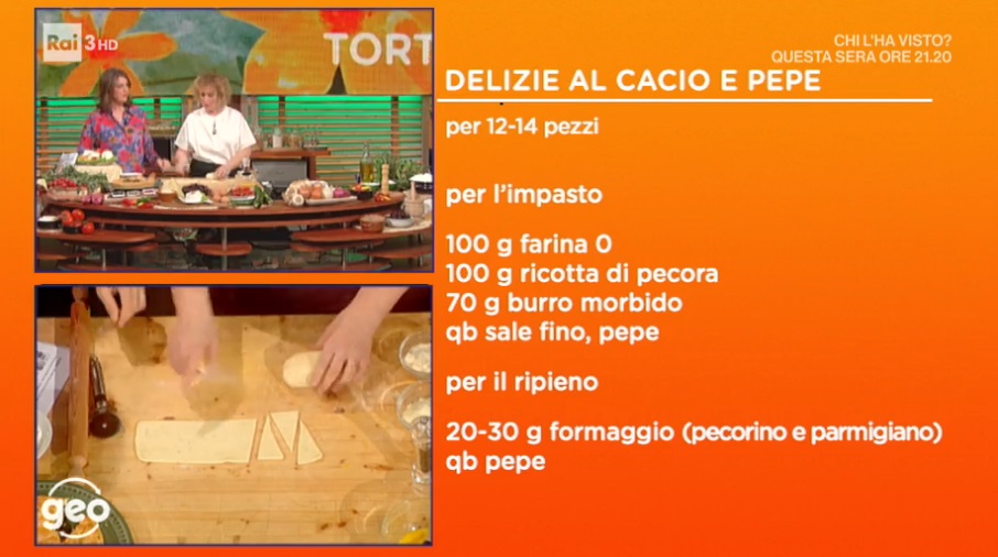 - Impasto per 12-14 pezzi: 100 g farina 0, 100 g ricotta di pecora, 70 g burro morbido, sale, pepe