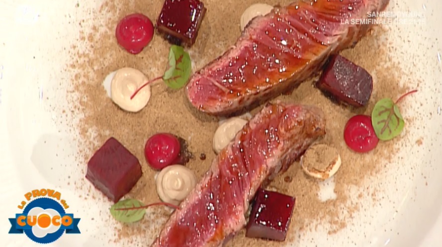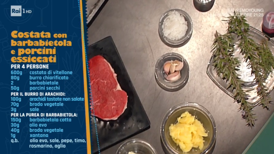 - 600 g costata di vitellone, 80 g burro chiarificato, 2 barbabietole, 50 g porcini secchi