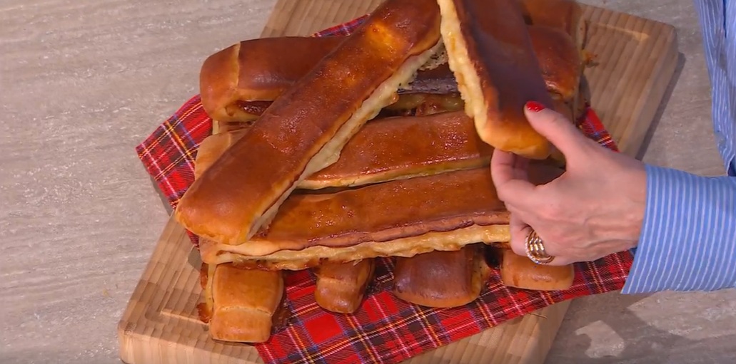 - 500 g farina 0, 100 g uova, 100 g acqua, 100 g latte, 20 g zucchero, 10 g sale, 10 g lievito di birra fresco, 80 g burro