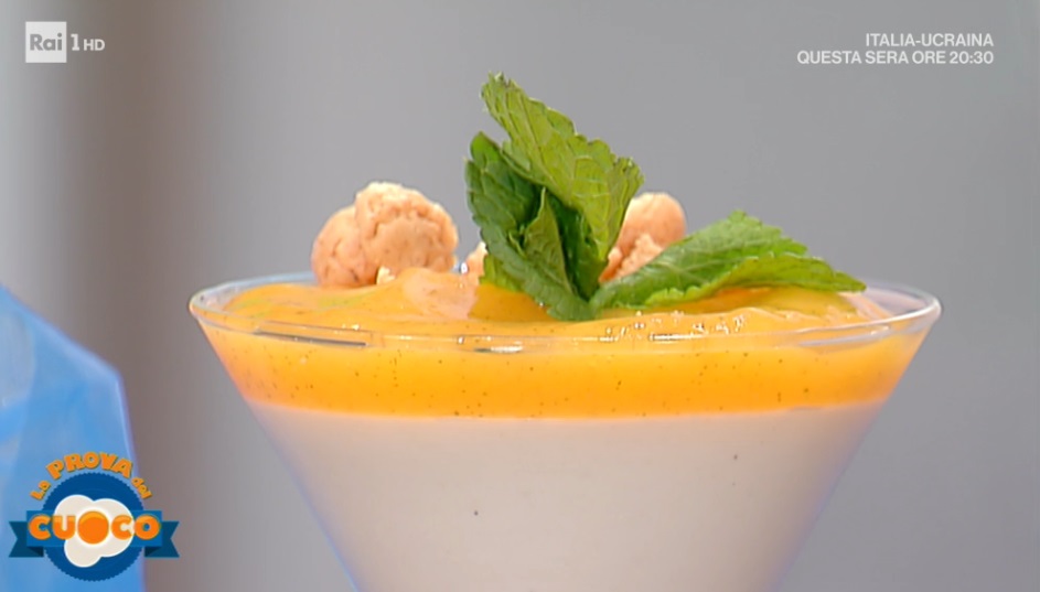 Mettiamo nei bicchieri un po’ di crema di ricotta, sopra la salsa di cachi. Decoriamo con foglie di menta e qualche amaretto sbriciolato.