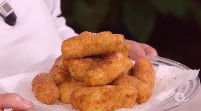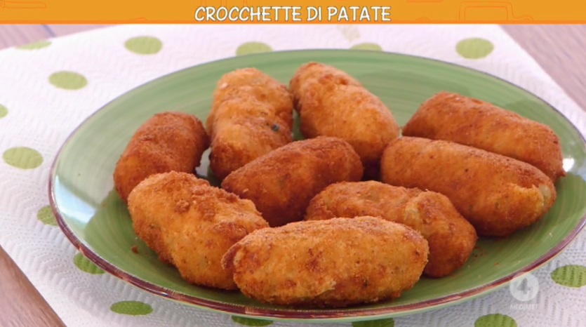 Sbattiamo gli albumi con una forchetta. Formiamo dei salsicciotti con l’impasto di patate sul ripiano infarinato. Tagliamo a tocchetti lunghi circa 5-10 cm. Passiamo le crocchette nella farina, negli albumi sbattuti e infine nel pangrattato. Friggiamo in olio ben caldo e profondo fino a doratura. Scoliamo su carta assorbente.