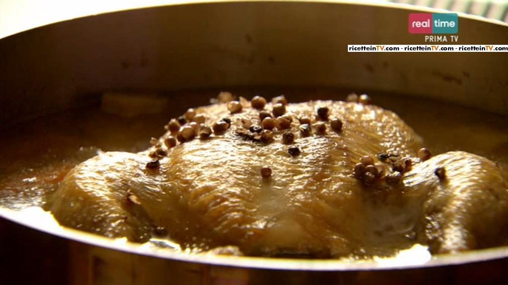 Giriamo il pollo, aggiungiamo le verdure tagliate grossolanamente: le carote, il sedano, il porro ed i gambi del prezzemolo. Aggiungiamo abbondante acqua (sino a metà del pollo). Saliamo, mettiamo delle foglie d’alloro e dei grani di pepe rosso. Quando bolle, abbassiamo la fiamma e lasciamo cuocere con il coperchio per 1 ora e mezza circa.