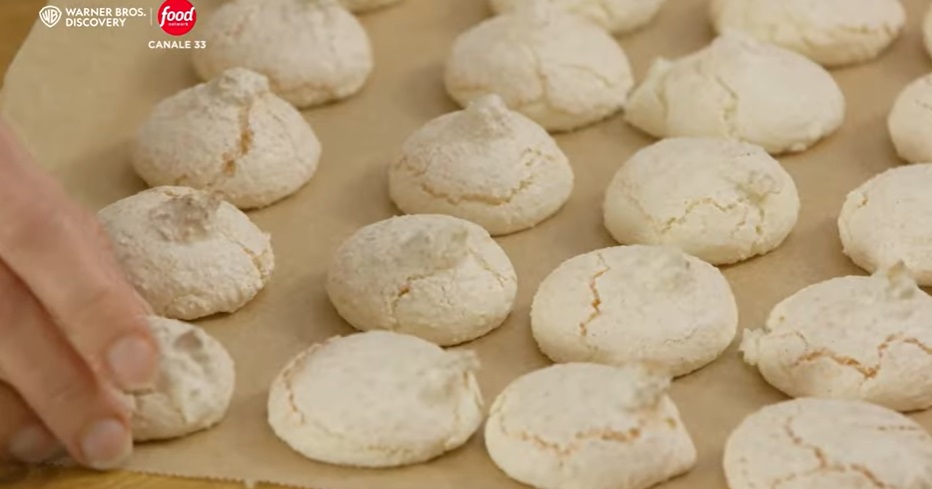 Su una teglia con carta forno, disponiamo dei ciuffi di impasto, come delle meringhe. Cuociamo in forno caldo e statico a 150° per 10 minuti.