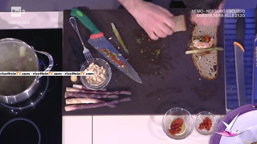 I tutor Fabio Pisani e Alessandro Negrini, protagonisti dello spazio dedicato alla cucina, all’interno del programma condotto da Caterina Balivo su Rai2, Detto Fatto, hanno preparato l’asparago croccante e pret a manger. Di seguito ingredienti e procedimento.