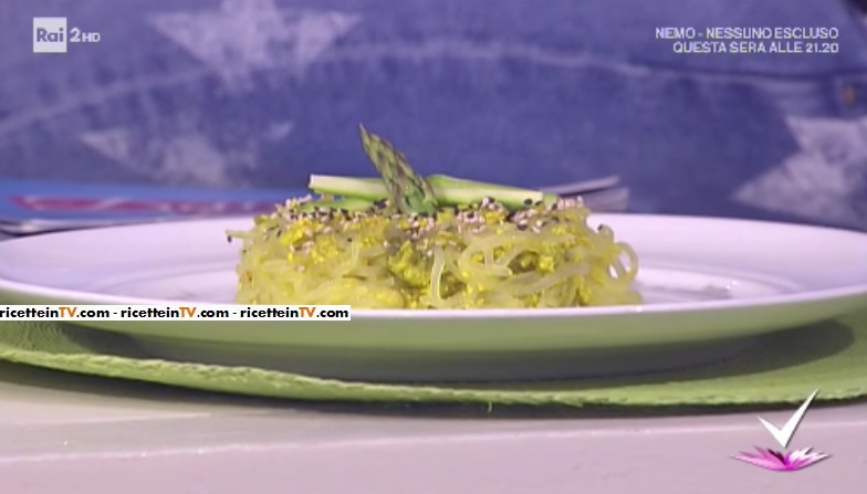 La tutor Paola Galloni, all’interno dello spazio dedicato alla cucina, del programma condotto da Caterina Balivo su Rai2, Detto Fatto, ha proposto un piatto unico ‘salutare‘, oltre che goloso: gli asparagi con tagliatelle shirataki e mimosa di tofu. Di seguito ingredienti e procedimento.