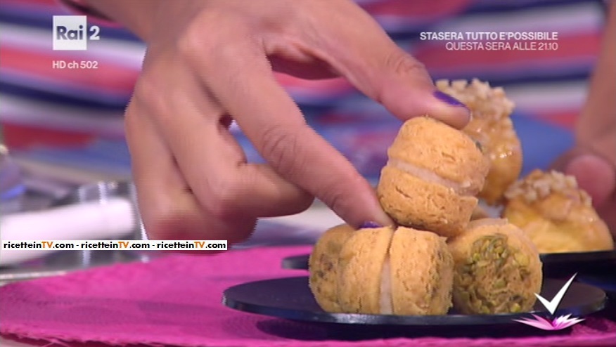 - Per 24 (10 persone) cannoncini al salmone: 500 g pasta sfoglia, 80 g cioccolato bianco, 2 uova, 40 g miele, 400 g salmone affumicato, 400 g panna fresca, pistacchi tritati, sesamo nero