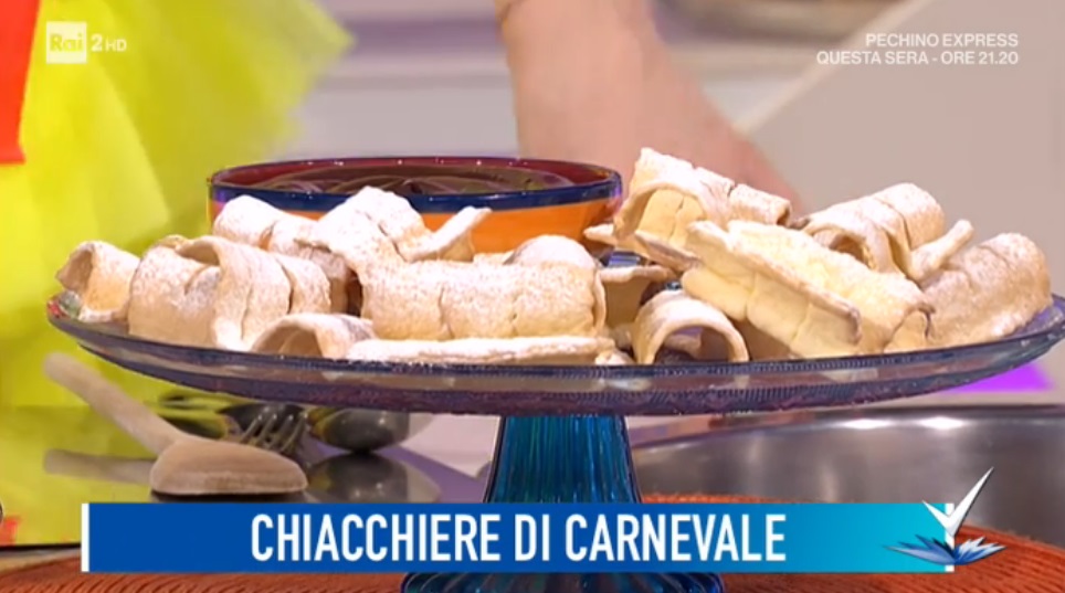 chiacchiere di Carnevale al forno di Luca PeregoIl tutor pasticcere Luca Perego, protagonista dello spazio dedicato alla cucina, all’interno del programma condotto da Bianca Guaccero su Rai2, Detto Fatto, ha preparato le chiacchiere di Carnevale al forno. Di seguito ingredienti e procedimento.