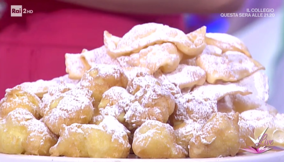 La tutor e nonna all’avanguardia Giustina, protagonista dello spazio dedicato alla cucina, all’interno del programma condotto da Bianca Guaccero su Rai2, Detto Fatto, ha dato la ricetta delle chiacchiere e tortelli con crema all’arancia. Di seguito ingredienti e procedimento.