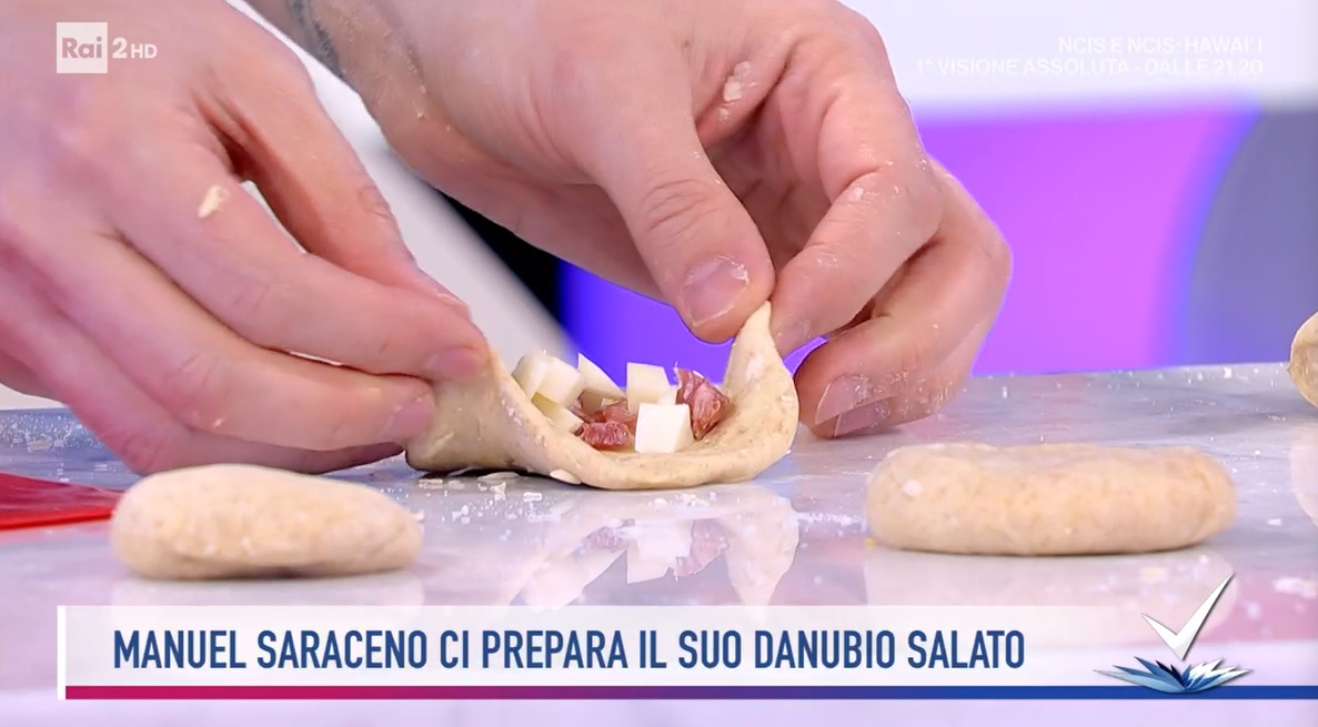 Il tutor Manuel Saraceno, protagonista dello spazio dedicato alla cucina, all’interno del programma condotto da Bianca Guaccero su Rai2, Detto Fatto, ha proposto un lievitato sfiziosissimo: il danubio salato. Di seguito ingredienti e procedimento.