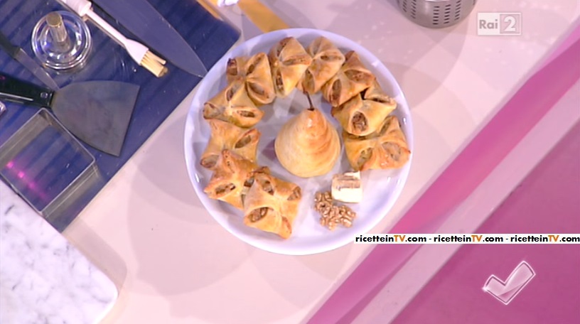 Per la farcitura: farciamo con taleggio, pere, noci e fior di latte. Ripieghiamo gli angoli sulla farcia, in modo da formare un fagottino. Spennelliamo con del rosso d’uovo e cuciamo a 180 gradi per circa 20 minuti.