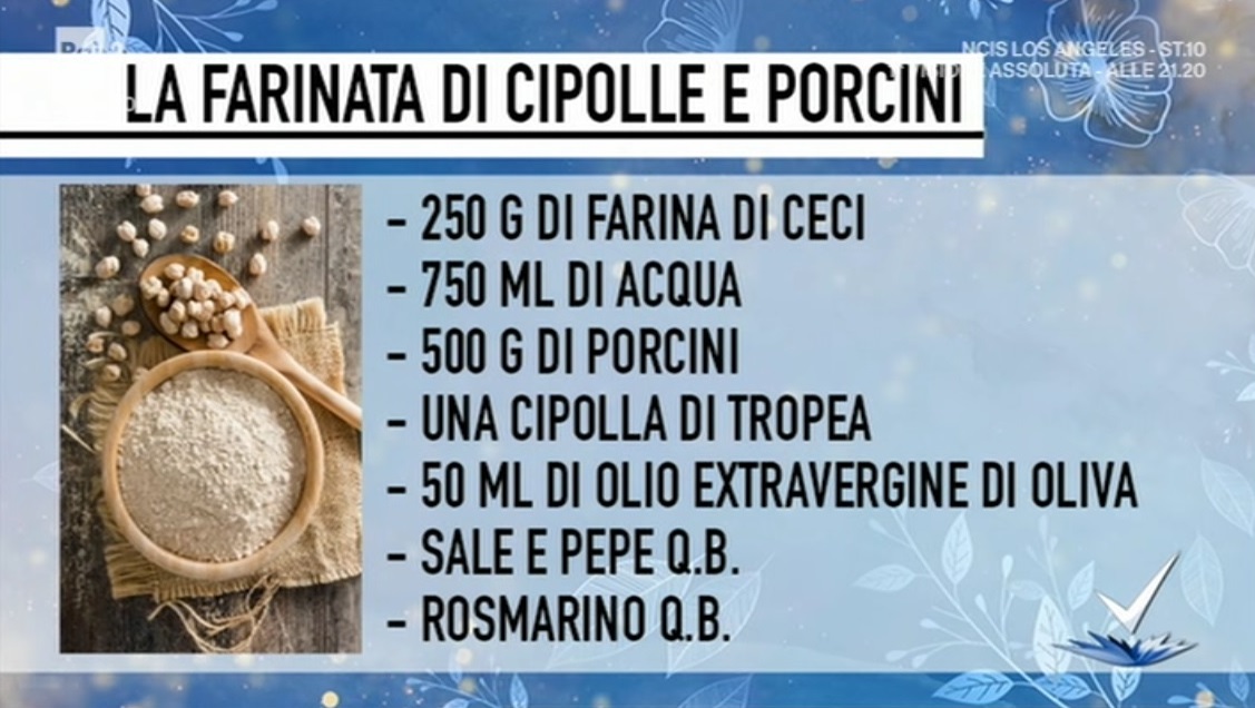 Il tutor Chiara Canzian, figlia di Red, protagonista dello spazio dedicato alla cucina, all’interno del programma condotto da Bianca Guaccero su Rai2, Detto Fatto, ha proposto una ricetta vegana e sfiziosa: la farinata di cipolle e porcini. Di seguito ingredienti e procedimento.