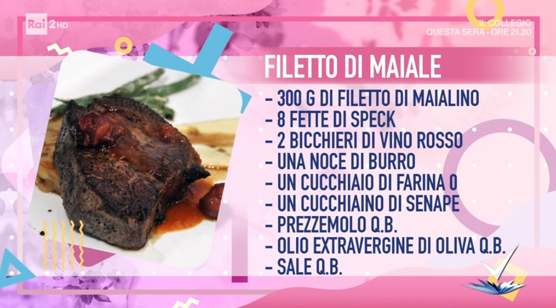 - 300 g di filetto di maialino, 8 fette di speck, 2 bicchieri di vino rosso, 1 noce di burro, 1 cucchiaio di farina 0, 1 cucchiaio di senape, prezzemolo qb, olio extravergine di oliva qb, sale qb