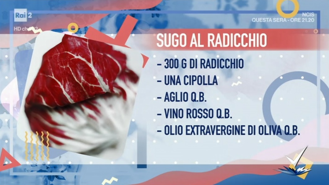 Il tutor Beniamino Baleotti, protagonista dello spazio dedicato alla cucina, all’interno del programma condotto da Bianca Guaccero su Rai2, Detto Fatto, ha preparato i garganelli filanti al radicchio. Di seguito ingredienti e procedimento.