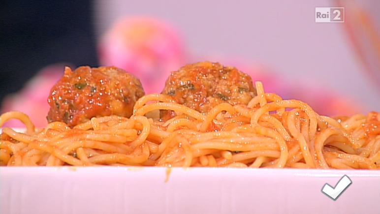 “Detto Fatto”: la ricetta degli spaghetti con polpette di Irene Pollini Giolai.