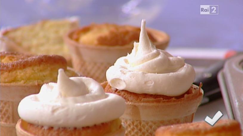 Ingredienti: 150 g di burro, 150 g di zucchero, 150 g di farina autolievitante, 3 uova, vaniglia, 1 cucchiaino di bicarbonato, 12 coni da gelato.