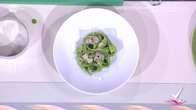 Cuociamo le mafaldine, degli spaghetti simili alle pappardelle, in acqua bollente e salata. Le scoliamo e le ripassiamo in padella con la crema di cime di rapa ed una spolverata di scorza di limone grattugiata. Completiamo con le vongole e le cime di rapa ripassate, quindi spolveriamo con dei taralli sbriciolati.