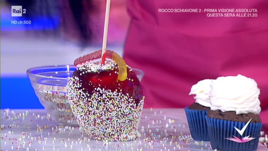 Mele: in un pentolino mettiamo l’acqua con il miele, il colorante rosso e lo zucchero. Lasciamo bollire fino ad ottenere uno sciroppo denso. A parte, sciogliamo a bagnomaria il cioccolato bianco. Laviamo le mele, le infilziamo con uno stecco e le immergiamo nello sciroppo ancora caldo. Lasciamo raffreddare. A questo punto immergiamo per 3/4 nel cioccolato bianco fuso e decoriamo con granella colorata.