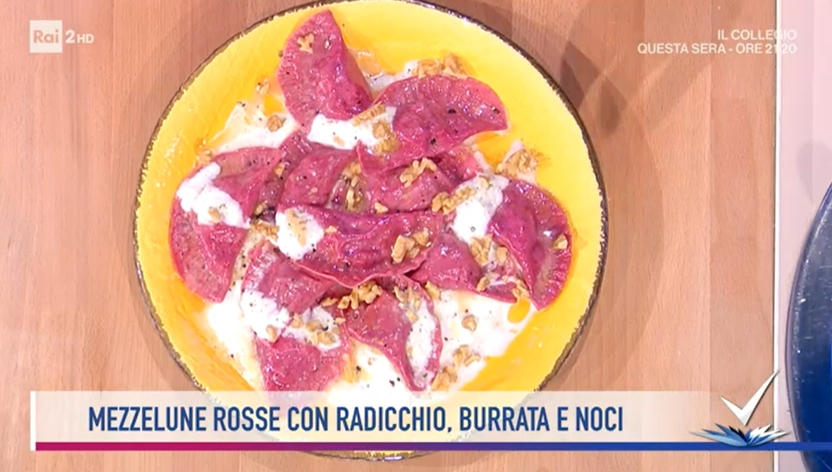 mezzelune rosse con radicchio e nociIl tutor Beniamino Baleotti, protagonista dello spazio dedicato alla cucina, all’interno del programma condotto da Bianca Guaccero su Rai2, Detto Fatto, ha preparato le mezzelune rosse con radicchio e noci. Di seguito ingredienti e procedimento.