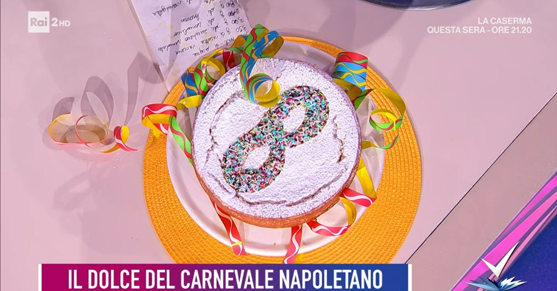 - 600 ml latte, 500 ml acqua, 350 g ricotta vaccina, 300 g zucchero, 250 g semolino, 80 g burro, 4 uova, vaniglia, scorza d’arancia, sale e zucchero a velo
