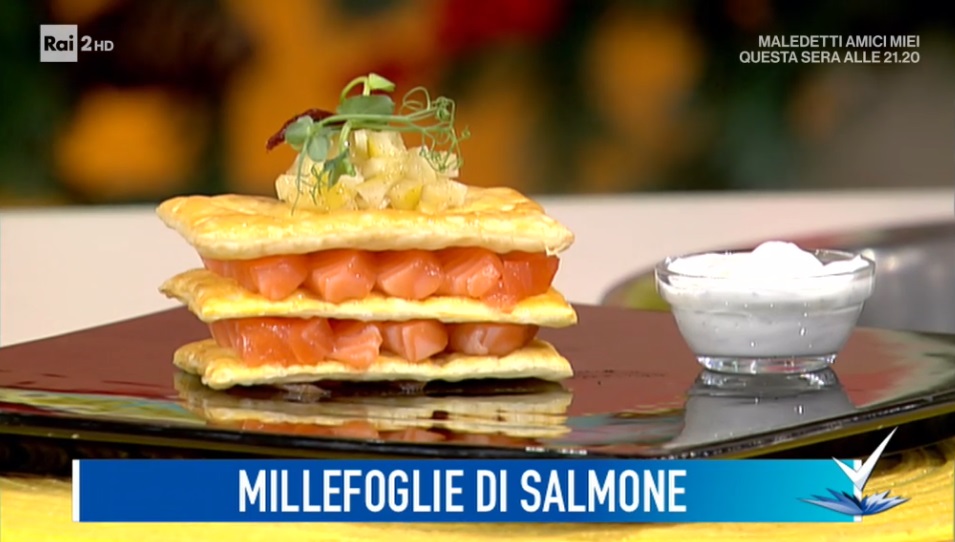 Il tutor Ilario Vinciguerra, protagonista dello spazio dedicato alla cucina, all’interno del programma condotto da Bianca Guaccero su Rai2, Detto Fatto, ha proposto la millefoglie di salmone. Di seguito ingredienti e procedimento.