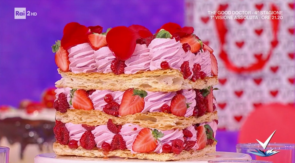 Il tutor ‘dolcissimo‘ Alessandro Capotosti, protagonista dello spazio dedicato alla cucina, all’interno del programma condotto da Bianca Guaccero su Rai2, Detto Fatto, ha preparato la millefoglie speciale di San Valentino. Di seguito ingredienti e procedimento.