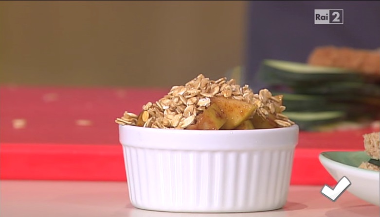 La tutor Paola Galloni, all’interno dello spazio dedicato alla cucina, del programma condotto da Caterina Balivo su Rai2, Detto Fatto, ha preparato un dolce salutare: il mini crumble di mele. Di seguito ingredienti e procedimento.